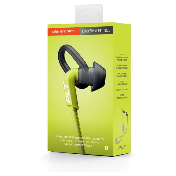 The Plantronics BackBeat FIT 305 Bluetooth Headphones bring your workout to the next level. These earbuds are designed to match the pace of your life and provide an extraordinary auditory experience. The features are easy to use and understand, and each one has been crafted with convenience and comfort in mind.