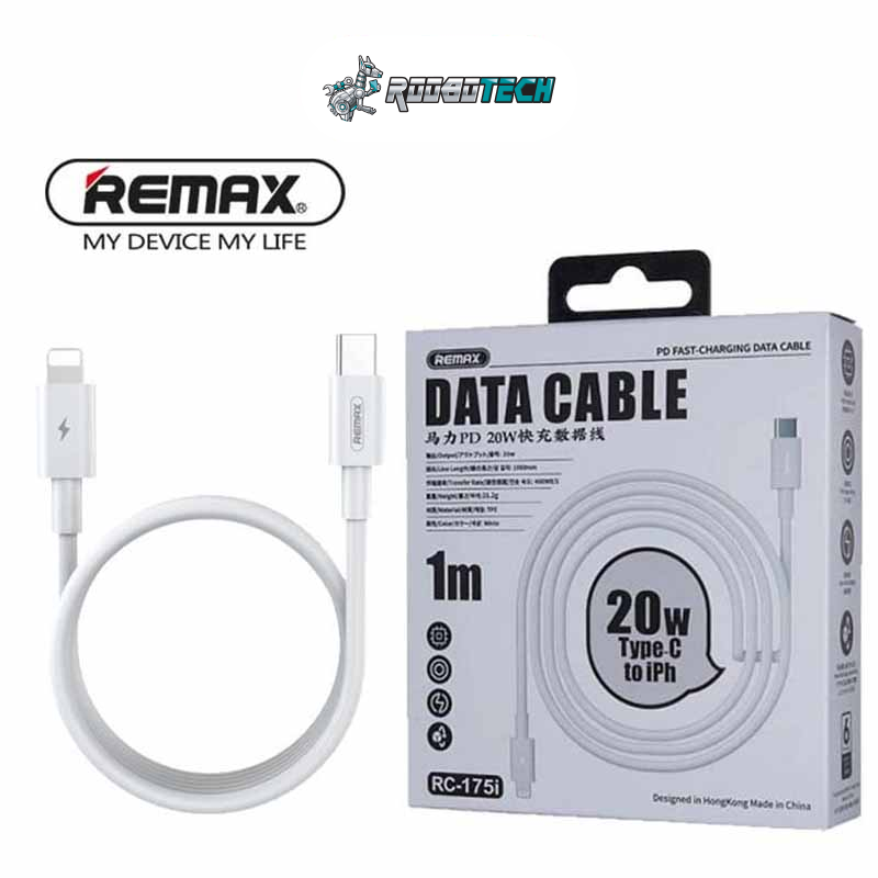That is the Remax [RC-175i] 1m Type-C to Lightning Cable, your best tool for a unique charging experience. It also supports PD 20W technology, which can quickly and efficiently charge your device from zero to fifty percent in less than 30 minutes. Whether you're planning more work tomorrow or need some power, the RC-175i will ensure that your device is always keeping up with you.